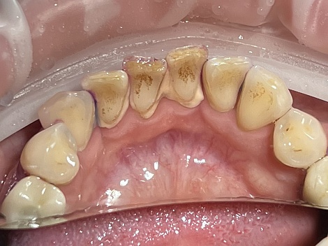 В рамках лечения провели комплексную гигиену полости рта, включая профессиональную чистку и удаление налёта.