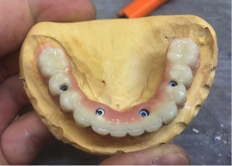 Акриловый протез «All-on-4», включающий имплантаты и элементы протезирования AnyRidge
