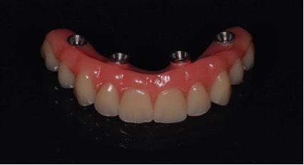 Постоянная керамокомпозитная конструкция на фрезерованном титановом основании «All-on-4», включающая имплантаты и элементы протезирования AnyRidge, а также временный акриловый протез