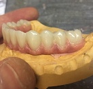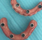 Постоянный акриловый протез «All-on-4», на фрезерованной титановой балке, включающий имплантаты и элементы протезирования AnyRidge, а также временный акриловый протез