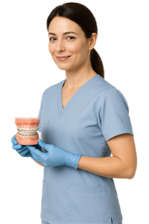 - Подготовка полости рта. Перед установкой выполняется санация: чистка, лечение кариеса, устранение воспалений — чтобы обеспечить надёжную фиксацию брекетов.
