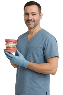 - Фиксация брекетов. Ортодонт аккуратно устанавливает брекеты Питтс на каждый зуб с помощью стоматологического клея, затем соединяет их дугой, которая запускает процесс мягкого и точного выравнивания.