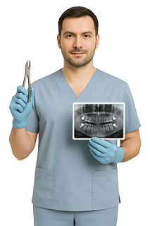 - Удаление. Простое — занимает 3–5 минут. При ретинированных зубах (под десной) хирург делает аккуратный доступ и удаляет фрагментами, чтобы сохранить целостность тканей.