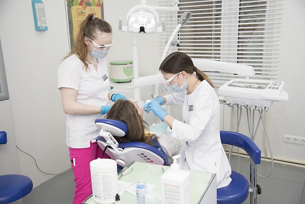 Клиника «Все свои!» в районе метро Бибирево ждет взрослых и детей для стоматологического лечения. Мы открыты ежедневно с 8:00 до 21:00. Высокая квалификация специалистов, многолетний опыт, а также техническое оснащение — бесшумные стоматологические установки, ортопантомограф, интраоральная камера, позволяют решать даже самые сложные клинические случаи. А центральное стерилизационное отделение обеспечивает безопасность при лечении.