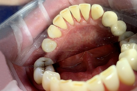 - Далее будет проведена полировка зубов с использование препарата Oral Bio Complex, который содержит неочищенную соль Мертвого моря с 26 минералами и микроэлементами. Его реминерализующее действие усилено анисовой пастой и эфирными маслами, которые обладают противовоспалительным эффектом.