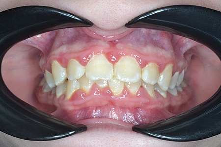 - На начальной стадии пародонтита эффективны медикаментозные методы и обработка десен аппаратом «Вектор». Ультразвук безболезненно воздействует на пораженный участок, удаляя зубной камень и бактериальную пленку.