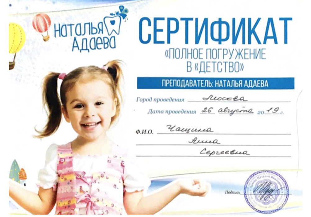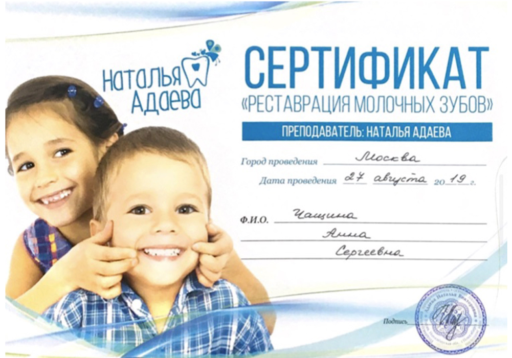 - «Реставрация молочных зубов». «Полное погружение в детство», Наталья Адаева;