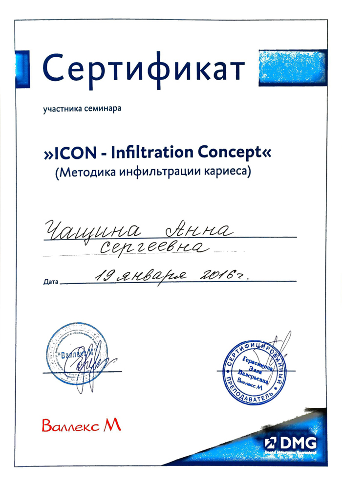 Забил на зубы и не занимался ими со школы, хотя были рекомендации уже тогда по лечению кариеса. Мягко скажем, запустил его, и чем дальше отсрочивал, тем сильнее загонял себя в классическую ловушку страха по обращению к стоматологу. Наконец-то созрел, решился, прошёл осмотр - разрушающийся предпульпитовый зуб, шансов на спасение нерва которого составило по оценкам всего 10%, и куча зубов с глубоким\средним кариесом (Как по факту оказалось, неожиданно глубоким в некоторых случаях) . Собрал волю, деньги и будь что будет. Попросил на лечение подобрать мне хорошего штатного специалиста, и ей оказался этот прекрасный врач, Чащина Анна Сергеевна. За целостность зуба борется до конца: благодаря её профессиональной работе удалось спасти нерв безнадёжного и на 90% приговорённого к пульпиту зуба, а так же глубокий кариес в остальных четырёх запущенных зубах. Пломбы врач ставит очень профессионально, можно даже сказать виртуозно, с точной обточкой по прикусу каждого индивидуального зуба, а не "тяп-ляп". Так же не могу не отметить то, как профессионально врач ставит анестезию: во время введения почти ничего не чувствуешь, кроме небольшого дискомфорта, а после возвращения чувствительности абсолютно никаких неприятных ощущений в дёснах. Так же врач сумел найти выход в непростой ситуации по обезболиванию, когда с одним из зубов обычная первичная анестезия сработала не полностью. У неё хорошее чувство юмора и ободряющий оптимизм, что важно для любого пациента =) Спасибо вам и вашим ассистентам за проделанную профессиональную работу! "Время - деньги" - короткая и всем знакомая фраза очень точно описывает отсрочивание лечения зубов с точки зрения трат, поэтому, как и все, настоятельно советую заниматься этим вопросом заблаговременно и не быть мной)