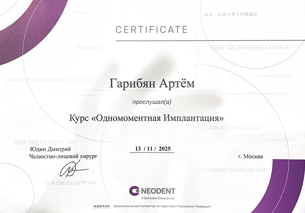 2025 г. - «Одномоментная имплантация», Neodent, Д.Юдин.