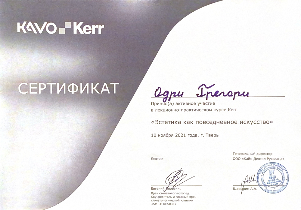 2025 г. - Ординатура в Московском областном научно-исследовательском клиническом институте по специальности «Стоматология хирургическая».