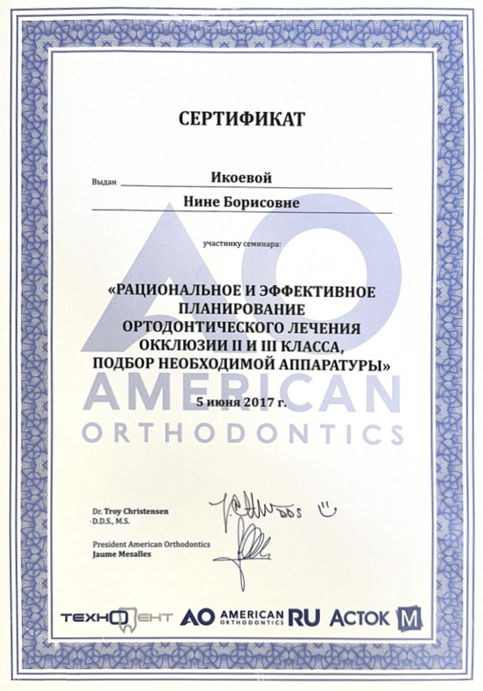 - «Рациональное и эффективное планирование ортодонтического лечения окклюзии 2 и 3 класса. Подбор необходимой аппаратуры», Dr. Troy Christensen, American Orthodontics;