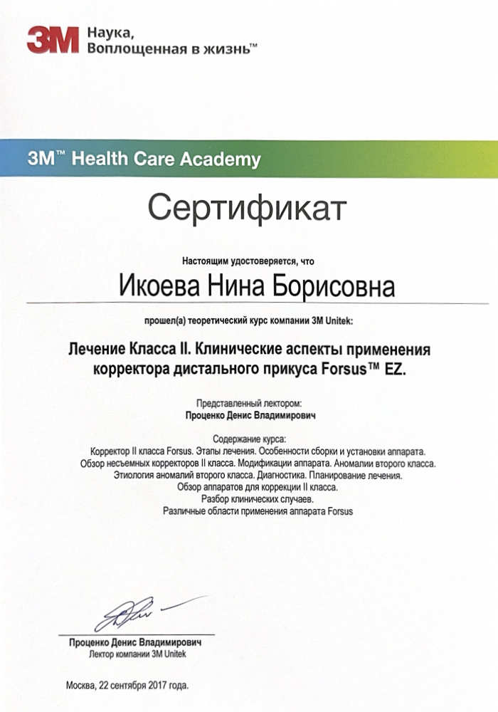 - «Low friction treatment mechanics and modern solutions in Class II patient treatment», 3М;