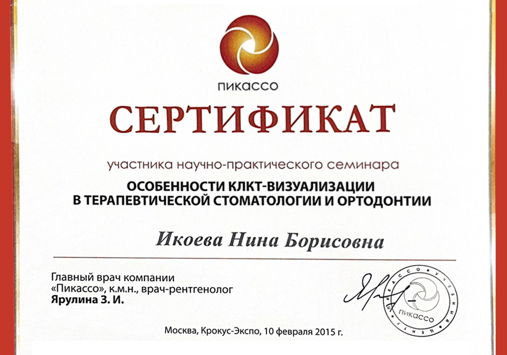 - «Особенности КЛКТ-визуализации в ортодонтии», Пикассо.