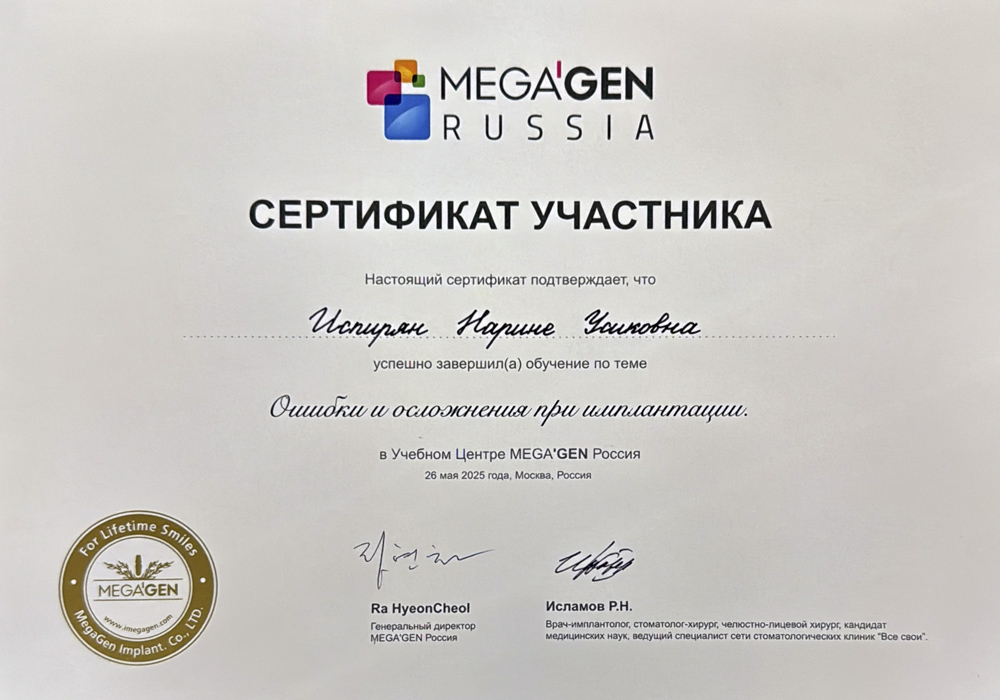 - «Ошибки и осложнения при имплантации», MEGAGEN;
