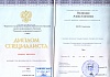 2016 г. - Профессиональная переподготовка на базе Московского государственного института усовершенствования врачей по специальности «Стоматология терапевтическая».