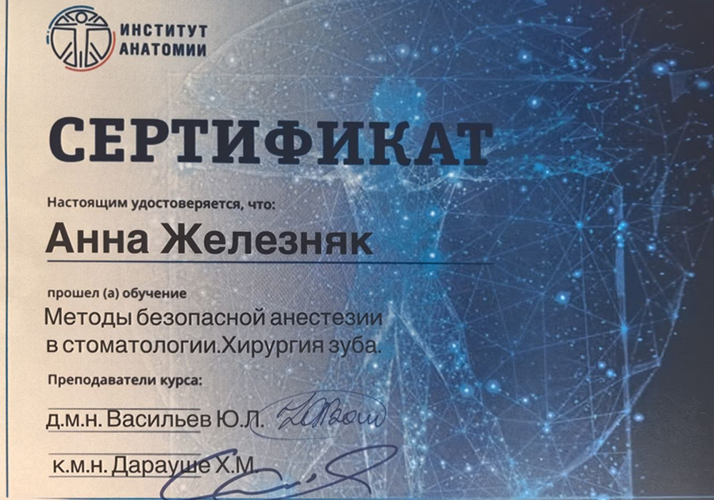 - «Методы безопасной анестезии в стоматологии. Хирургия зуба», Институт анатомии Центра инноваций Сколково, д.м.н.Ю.Л.Васильев, к.м.н.Х.М.Дарауше;
