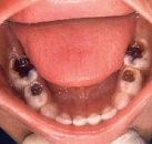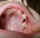 Часто у детей встречается и кариес молочных зубов. Как правило, кариес появляется у детей в возрасте 2-3 лет, в исключительных случаях – раньше. Кариес является заболеванием твердой ткани зуба, которое приводит к тому, что образовываются повреждения на ней. Запущенный кариес чреват появлением полостей в зубе. Стоит заметить, что детская стоматология располагает множеством способов лечения кариеса у детей даже самого раннего возраста. Детская стоматология предусматривает следующие способы лечения кариеса: серебрение, пломбирование. Серебрение проводится у деток раннего возраста. Начиная с трех лет врач уже может пломбировать появившиеся в зубе дырочки.