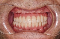 Постоянная керамокомпозитная конструкция на фрезерованном титановом основании «All-on-4», включающая имплантаты и элементы протезирования A.B. Dental а также временный акриловый протез