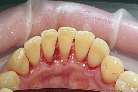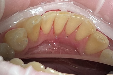 - На первом этапе врач использует ультразвуковой скалер для борьбы с твердыми отложениями на всей поверхности зубов.