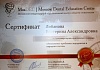 2020 г. - Повышение квалификации в Учреждении дополнительного профессионального образования «Спутник» по специальностям «Стоматология хирургическая» и «Стоматология терапевтическая».